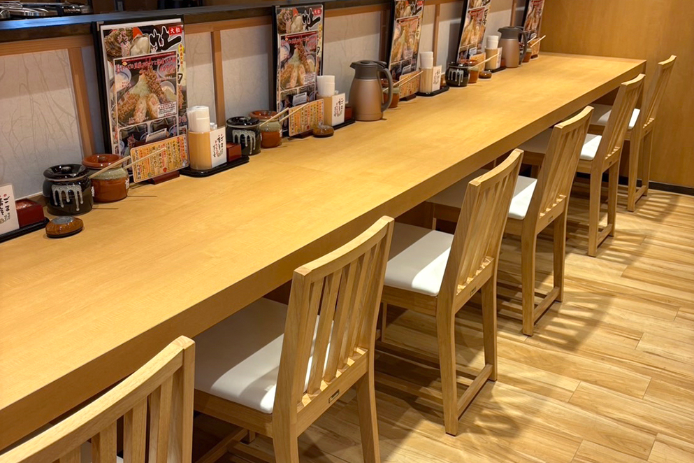 We serve the hot crispy “freshly-fried” tempura in front of guests in the kitchen they can see from the counter. It is a reasonable restaurant of freshly-fried tempura and seafood where alone or the families can easily come.